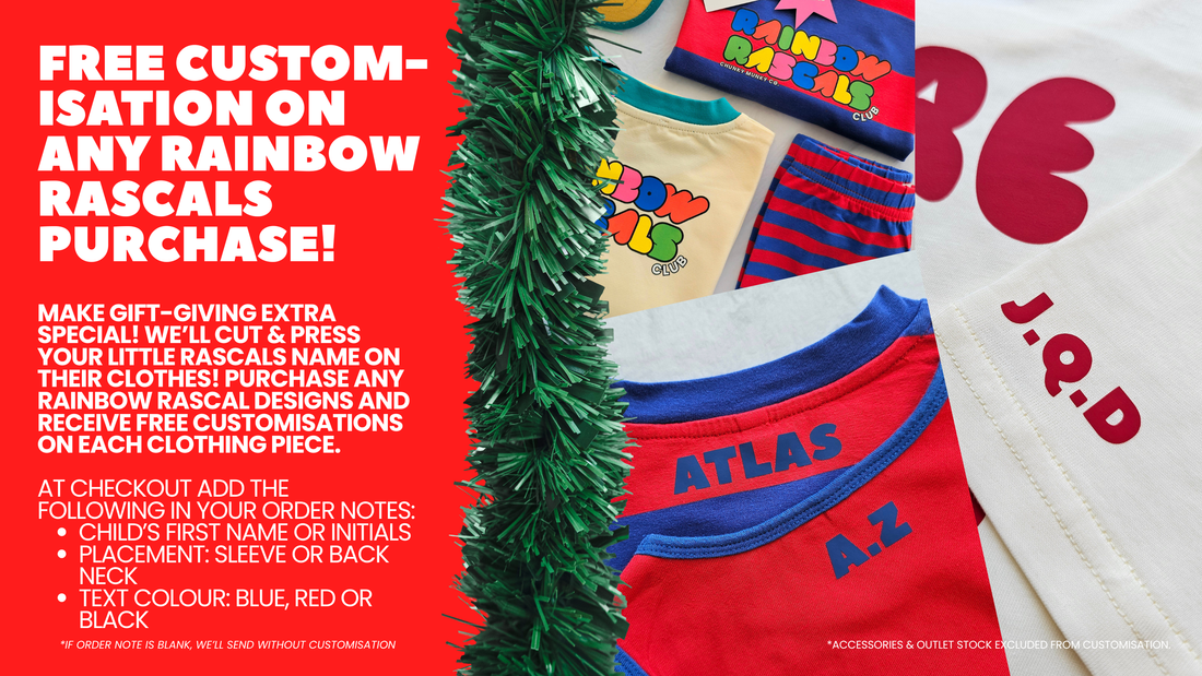 Complimentary name customisation with any Rainbow Rascals purchase